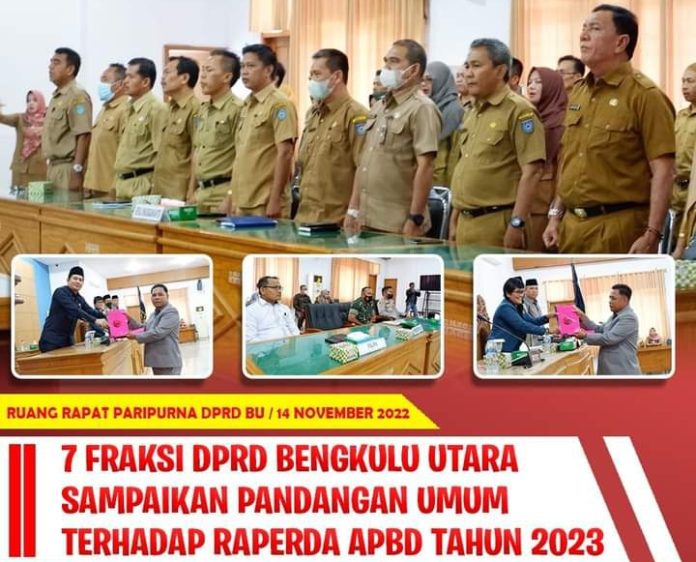 Paripurna dipimpin langsung oleh Ketua DPRD Bengkulu Utara, Sonti Bakara, paripurna ini penyampaian pandangan umum fraksi-fraksi DPRD Kabupaten Bengkulu Utara terhadap Nota Keuangan dan Rancangan Peraturan Daerah Tentang Rancangan APBD Bengkulu Utara Tahun Anggaran 2023.
